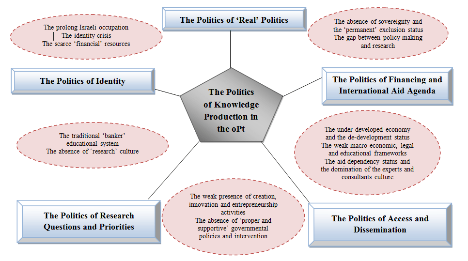 This paper also argues that despite the various initiatives as TOKTEN (The Transfer of Knowledge Through Expatriate Nationals) and PALESTA (Palestinian Scientists and Technologists Aboard) to attract Palestinians expatriates to contribute to the knowledge production, however, their role remains limited, unsustainable, and fragmented. Furthermore, this paper argues that despite the genuine analysis and knowledge produced by national and local actors, however, this knowledge is more often ignored or discarded for various reasons including the Palestinian Authority preference to depend on international rather than local expertise. Consequently, this paper suggests a five-dimensional framework to create a better understanding for the politics of knowledge production in the oPt based on understanding the politics of aid and financing, identity and ‘real’ politics. Finally, this paper concludes that the international expertise will continue to re-produce its blueprints and knowledge within a top-down framework, unless a shift in power balances occur and the ‘locals’ sit in the ‘driver seat’.