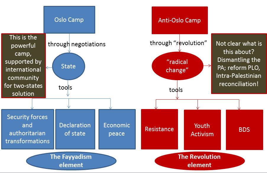 Advancing few arguments: The occupied state of Palestine is an outcome of the neoliberal Fayyadism paradigm and another regional and international Failure; Due to the neoliberal Fayyadism and its security agenda, there is no revolution in Palestine; Aid dependency; PA persistence financial crisis; and fragmented illegitimate leadership are prescriptions for ultimate failure and collapse; Sustainable peace is irrelevant and unattainable; The question remains: What did the interaction between the ‘inward and outward diffusions’ bring closer: a Palestinian state? a sustainable peace? or a multilevel intifadas/uprisings?